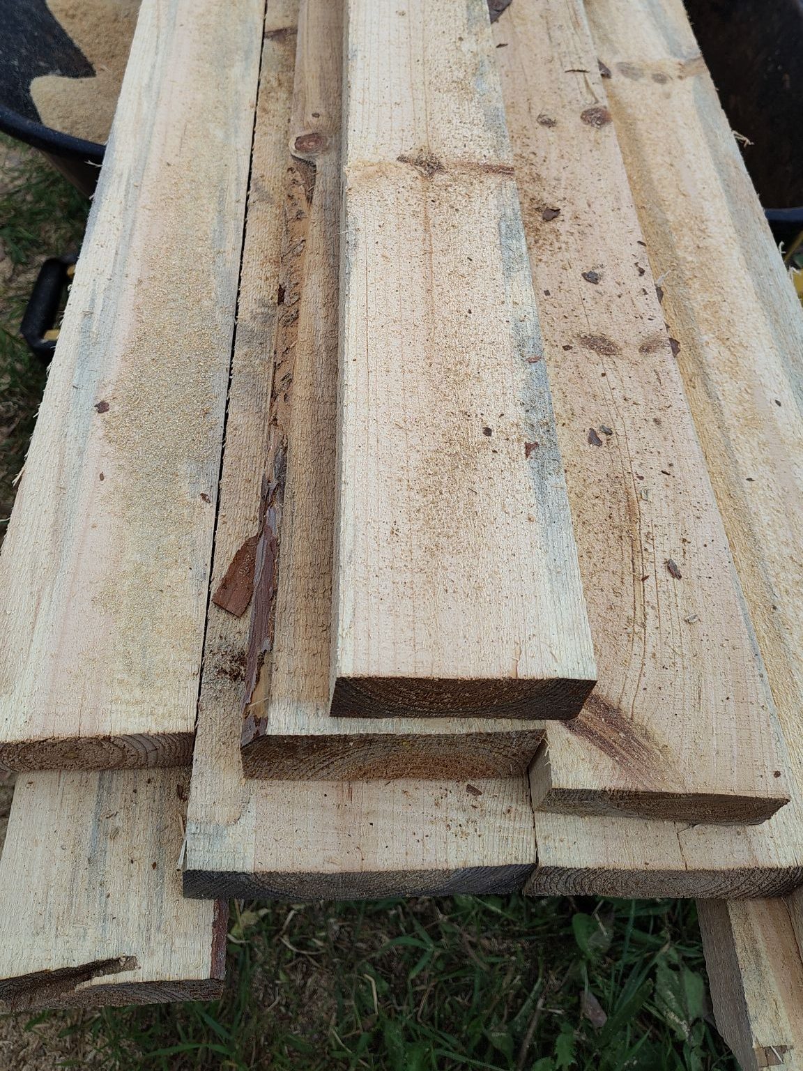When you’re going through your lumber piles and find some thicker timbers or beams (without nails!) that have dried or warped in challenging ways, keep in mind that re-sawing them is a way to put them back to use. Check out our Custom Milling page for more information.