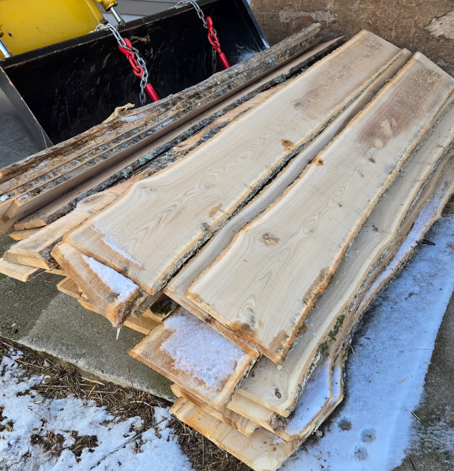 We can mill logs or re-saw timbers that you provide to just about any dimension or shape you need for your project. We can do wide slabs with live or flat edges, rough sawn lumber, and beams of any size, as long as the log fits on the sawmill!