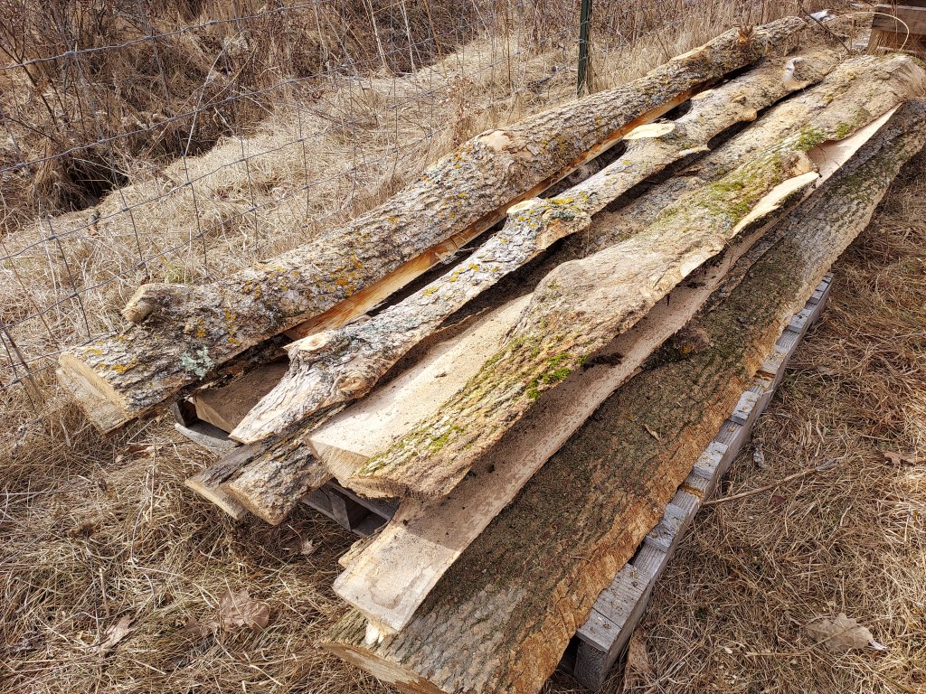 2025 STOCK: Our current stock of slabs and a few sizes of lumber is all from various local species. This stock was milled in early 2025. It is still considered green and should continue to air-dry until at least mid-2026 before being used in a project where shrinkage may be detrimental. For projects where that won’t be an issue, this stock is ready to go!