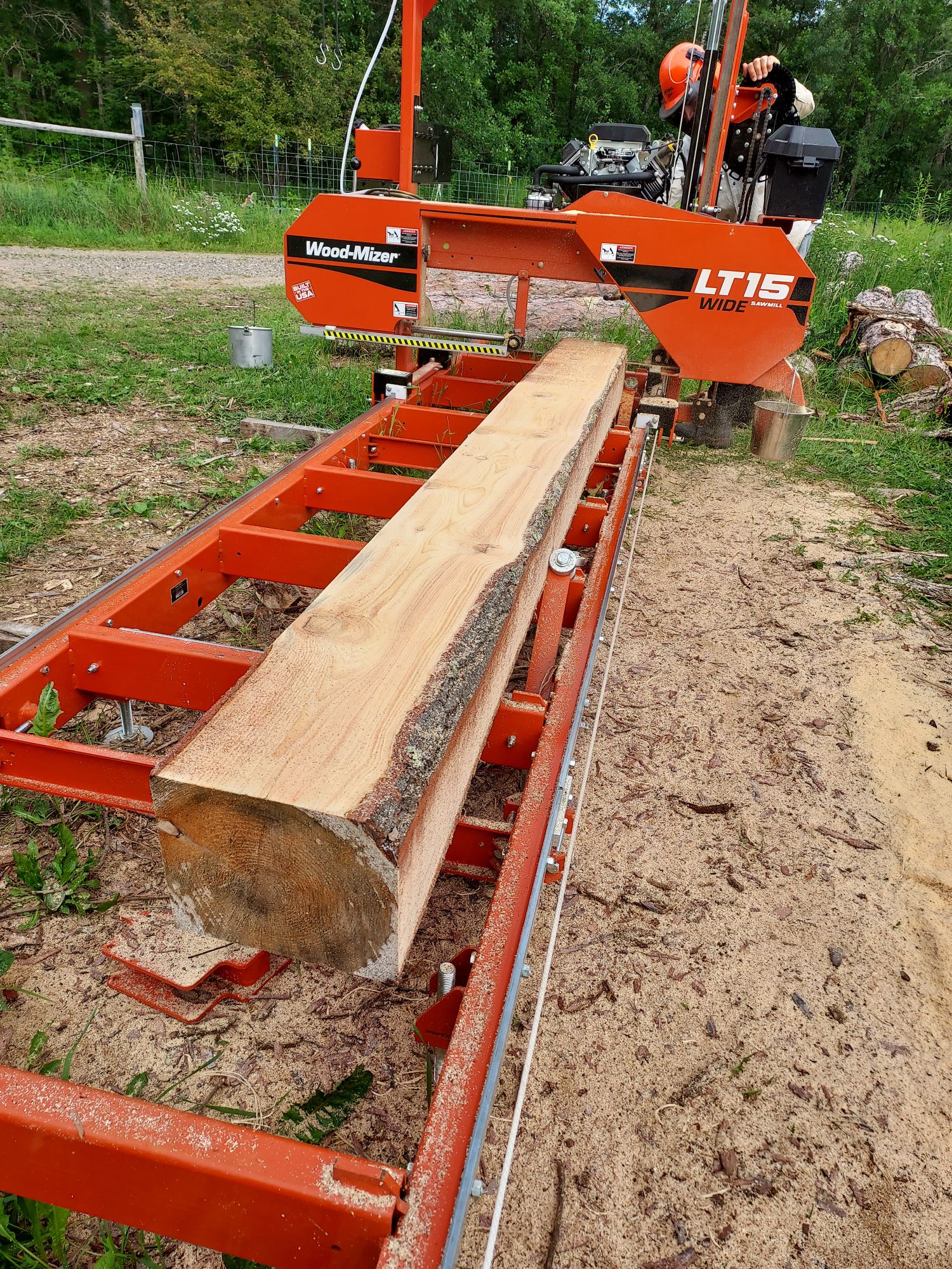 Our Wood-Mizer LT15 Wide stationary sawmill can mill logs up to 15′ long and 36″ in diameter into boards as thin as 1/8″.